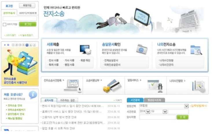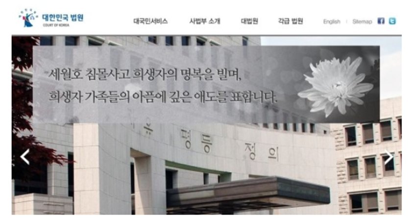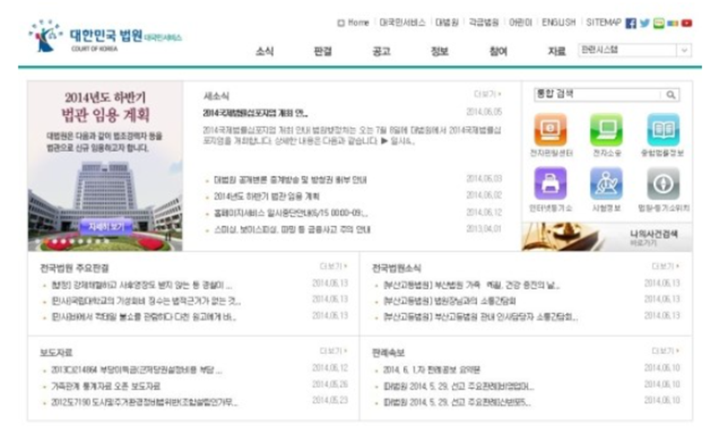 검색 결과에 따라 대법원 홈페이지 메인화면으로 들어왔다면 위와 같은 메인 화면을 확인 할 수 있습니다.